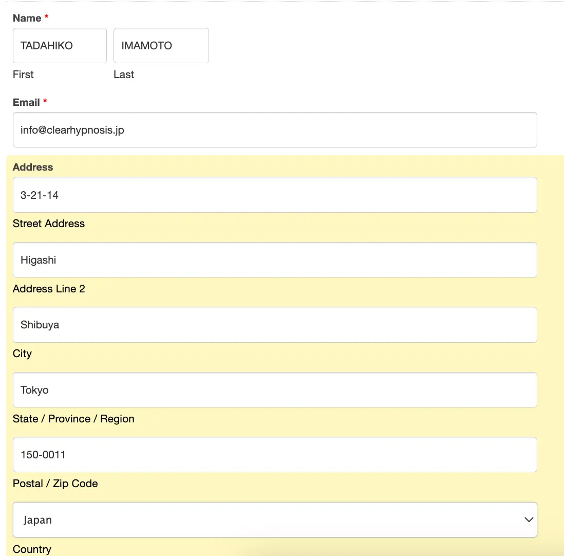 そして、その下の欄『Tell us about the Training you've taken in Hypnosis:(あなたが受講したヒプノセラピーのトレーニングについて教えてください。』というところには、英語で、