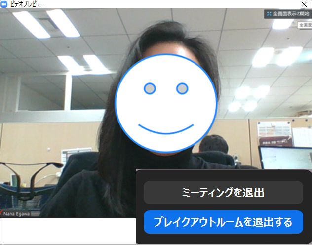 必ず、「ブレイクアウトルームを退出する」ボタンを押して、メインルームに戻ってきてください。